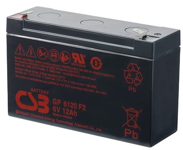 CSB GP6120 представляет собой свинцово-кислотный аккумулятор емкостью 12 Ач и напряжением 6 В изготовленный по технологии AGM и обладающий превосходными характеристиками. Аккумулятор имеет усовершенствованную конструкцию, что обеспечивает продолжительный срок службы и улучшенные разрядные характеристики. Герметичный корпус из ABS-пластика позволяет использовать батарею в любом положении. Как и все батареи CSB, она перезаряжаемая, высокоэффективная и не требующая обслуживания. Батареи CSB GP6120 предназначены для резервного питания промышленного оборудования, используются в источниках бесперебойного питания, системах охранной и пожарной сигнализации, портативном измерительном оборудовании и электроприборах, системы отопления и водоснабжения, терминалы самообслуживания. Срок службы в достигает 5 лет при работе в буферном режиме.