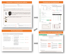 - поэтапное выполнение исследовательской работы в разделах «Описание», «Проведение», «Анализ», «Просмотр»;